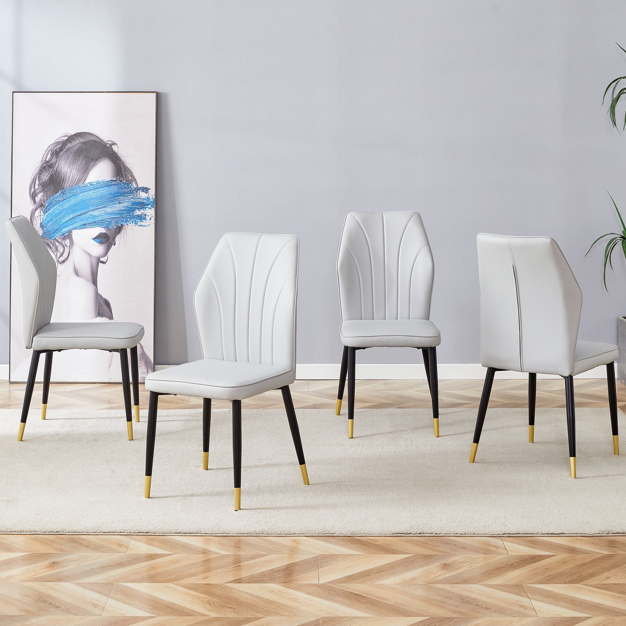 4 light gray modern dining chairs with stylish PU patterned backrest and black metal legs for a comfortable home experience in the kitchen 4 light gray modern dining chairs with stylish PU patterned backrest and black metal legs for a comfortable home experience in the kitchen 4 light gray modern dining chairs with stylish PU patterned backrest and black metal legs for a comfortable home experience in the kitchen